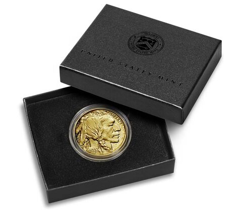 Der “Presidential $1 Coin Act” von 2005 legte nicht nur das Motiv fest, sondern auch die Verwendung ausschließlich US-amerikanischen Goldes aus “Minen in den Vereinigten Staaten oder aus Territorien deren Besitz” für den American Gold Buffalo. Die Münze wurde einer 1-jährigen Testphase unterzogen, um sicherzustellen, dass das historische Motiv die gewünschte Zustimmung fand.
